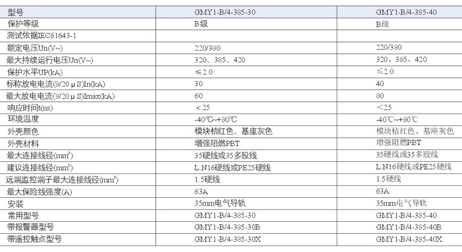 GMYI-B/4-385-30、GMYI-B/4 -385-40電涌保護器適用于交流50/60Hz,額定電壓至380V的TT 、TN-S 、TN-C 、TT等供電系統(tǒng),可作為雷擊時等電位連接,其設(shè)計依據(jù)完全符合IEC6 1 64 -1 、GB50057-94(2000年版)。外殼斷路器安裝在35mm電氣導軌上,該產(chǎn)品內(nèi)置失效脫離裝置,當電涌保護器因過熱、擊穿失效時,失效脫離裝置能自動的將其從電網(wǎng)上脫離,同時可視告警指示器由綠色變成紅色,并通過報警開關(guān)觸點裝置,實現(xiàn)遠程監(jiān)控功能,保護模塊可在有工作電壓的情況下更換。